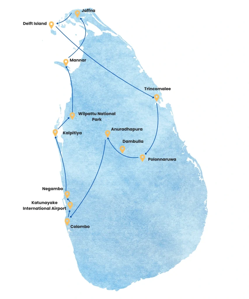 Embark on an extraordinary 14-day journey through Sri Lanka’s northern and cultural heartlands, where history, wildlife, and breathtaking landscapes come together for a truly immersive experience. Perfect for families, couples, and all travellers, this tour balances adventure, culture, nature, and relaxation.
